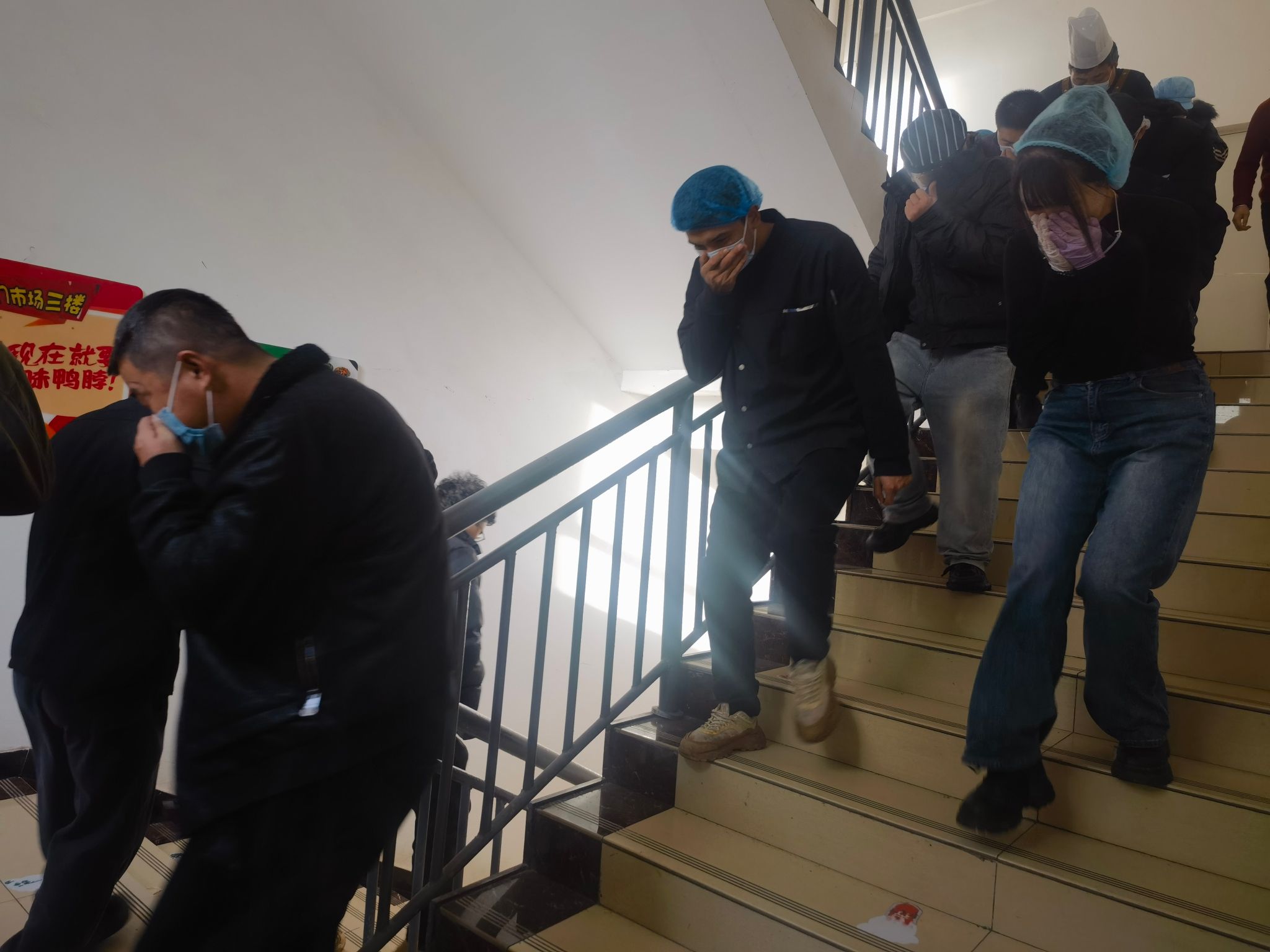 下午16时许,东门市场楼内突发模拟火情,演练烟雾装置冒出浓烟,消防警报瞬间响起,应急灯自动打开。市场各楼层指挥员积极做出反映,暂停使用电梯,组织楼内就餐人员捂住口鼻,俯身弯腰,沿安全出口方向紧急撤离。楼内商户各负其责,有带领下楼的,有搀扶顾客的,有大声呼喊撤离的,楼内人员通过两侧楼梯跑动至室外空旷场地。最后,各楼层指挥员逐个报告,确保楼内无人员被困。疏散演练指挥得力,人员疏散有序,保证全部撤离,取得了预期效果。